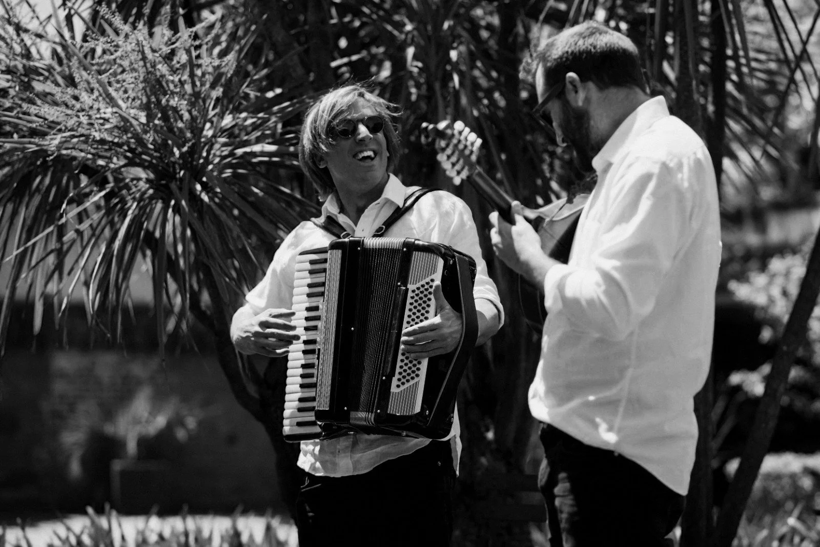 Músicos móviles que recorren tu evento tocando música italiana, brasileña, alemana, y versiones de rock y pop en mandolina y acordeón. También ofrecemos un repertorio instrumental ideal para recepciones o bodas.
